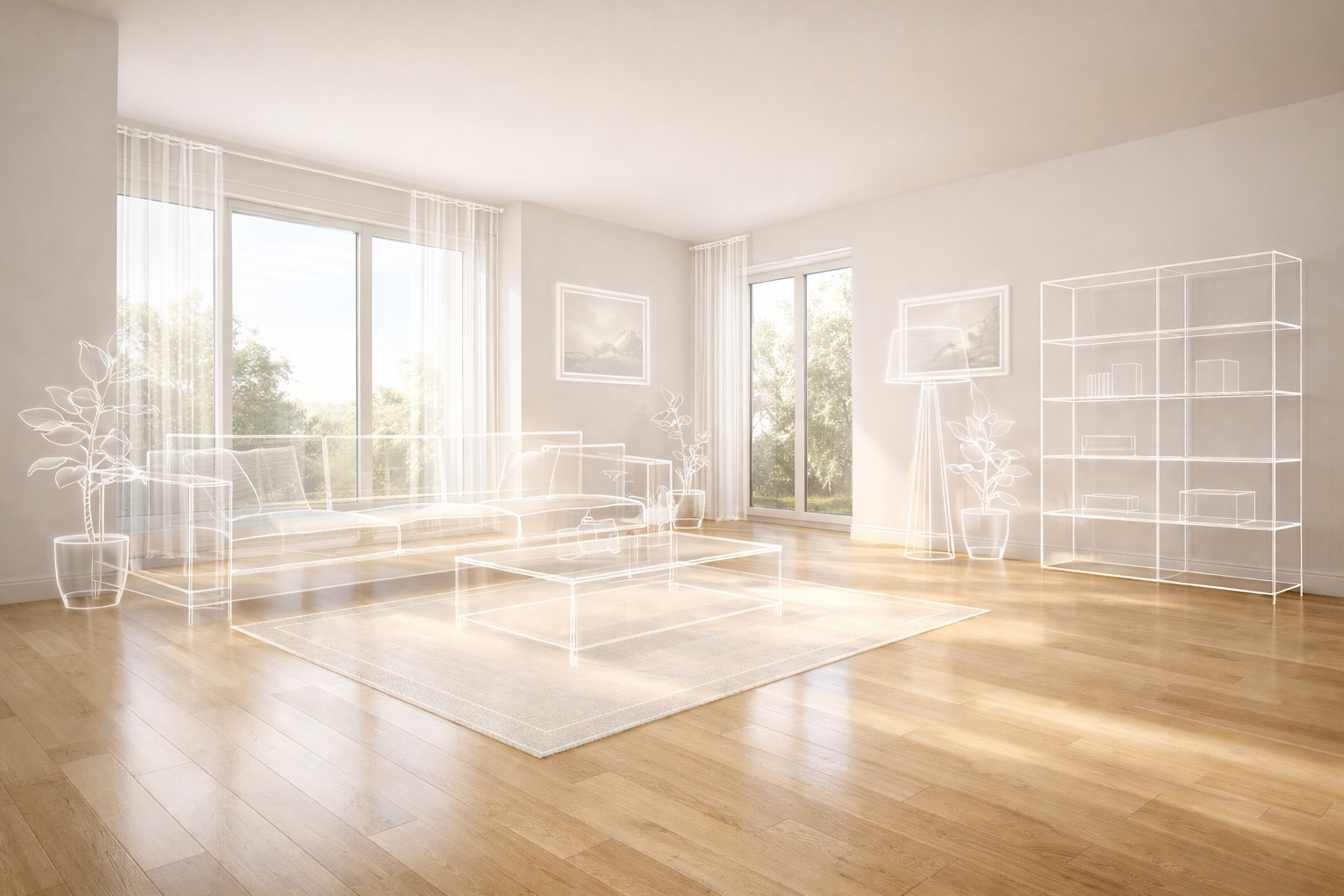 A tailored bundle for listings — floor plan documentation plus fully staged rooms to help buyers picture life in the space.